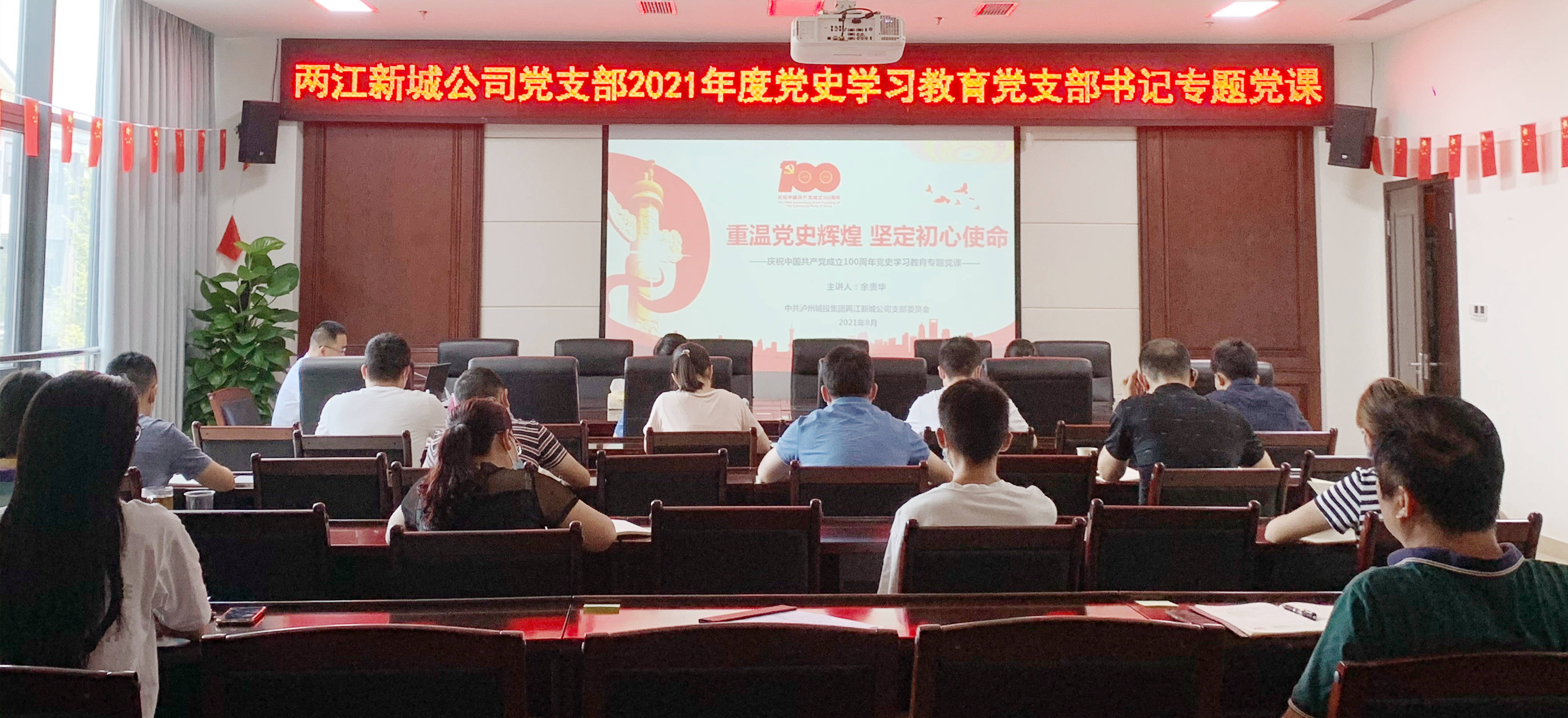 8月6日,兩江新城公司黨支部書(shū)記余貴華以《重溫黨史輝煌  堅(jiān)定初心使命》為題講授黨史學(xué)習(xí)教育專(zhuān)題黨課。此次黨課學(xué)習(xí)嚴(yán)格落實(shí)防疫工作要求,與會(huì)人員佩戴口罩間隔一米落座。
