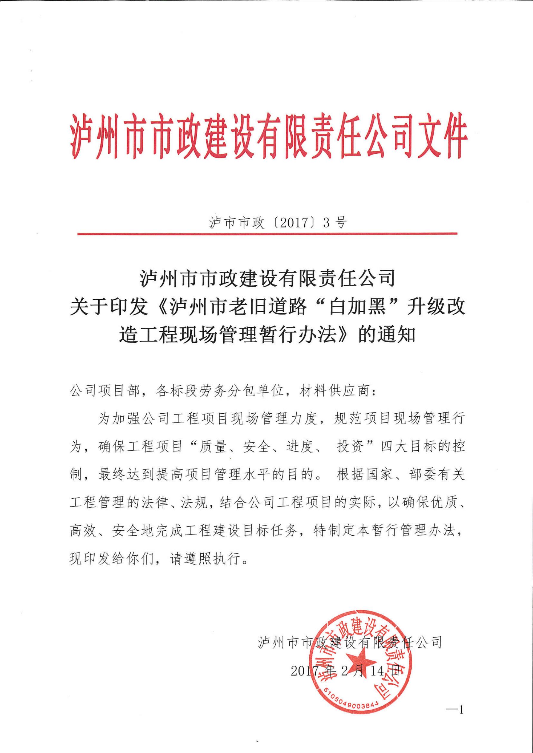 “白加黑”升級(jí)改造項(xiàng)目是瀘州市市政建設(shè)有限責(zé)任公司的第一個(gè)項(xiàng)目,同時(shí)也是民生工程、惠民工程,由于涉及范圍廣、受眾面大,項(xiàng)目初期投入大量人力、物力制作和規(guī)范設(shè)置施工現(xiàn)場(chǎng)圍擋,并專(zhuān)門(mén)出臺(tái)《瀘州市老舊道路“白加黑”升級(jí)改造工程現(xiàn)場(chǎng)管理暫行辦法》,要求各標(biāo)段以創(chuàng)文工作為契機(jī),積極做好施工現(xiàn)場(chǎng)的安全文明施工和環(huán)境保護(hù)工作。