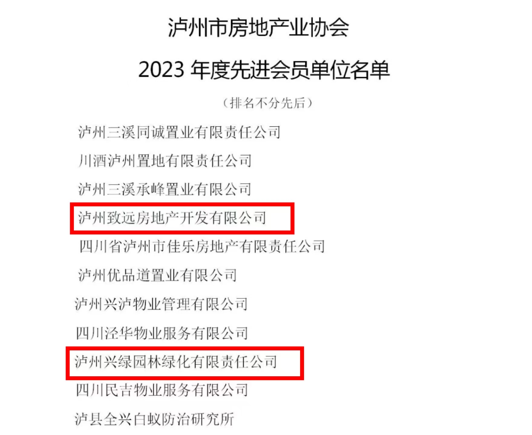 喜報(bào)!瀘州城投集團(tuán)下屬興綠園林公司、致遠(yuǎn)房地產(chǎn)公司榮獲瀘州市房地產(chǎn)業(yè)協(xié)會(huì)“2023年度先進(jìn)會(huì)員單位”稱號(hào)