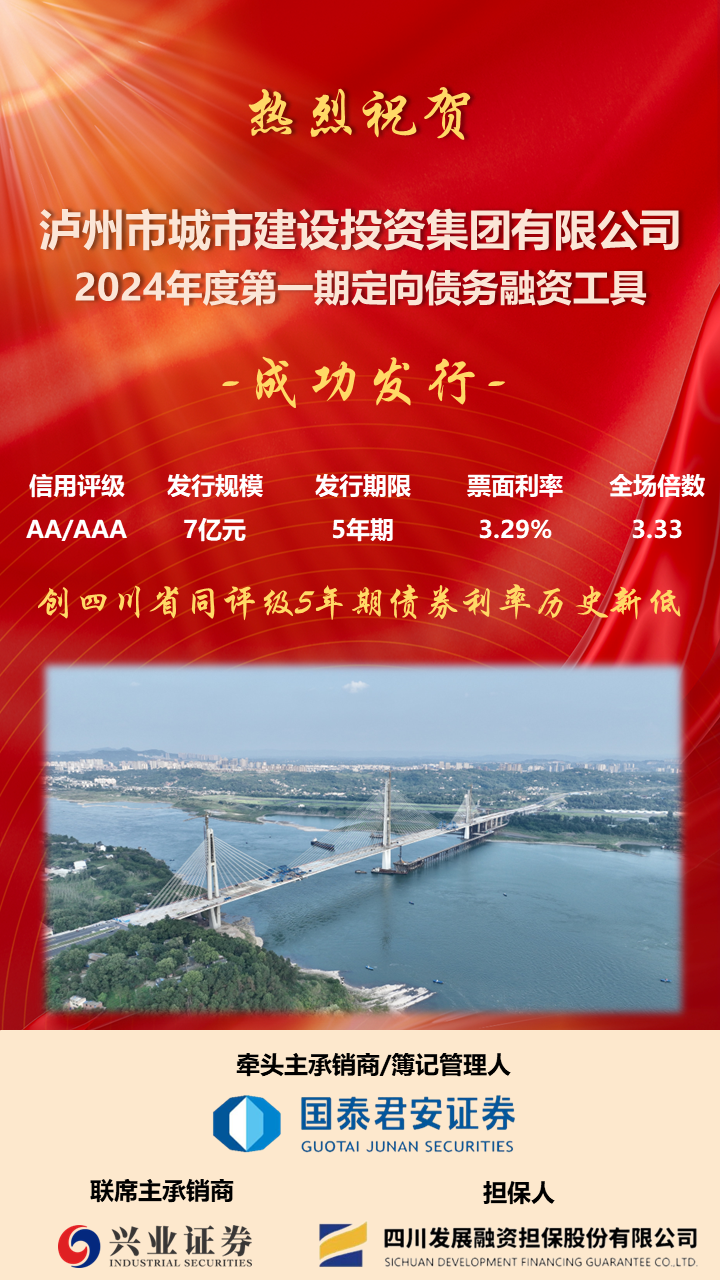 喜報(bào)!瀘州城投集團(tuán)2024年度第一期定向債務(wù)融資工具成功發(fā)行