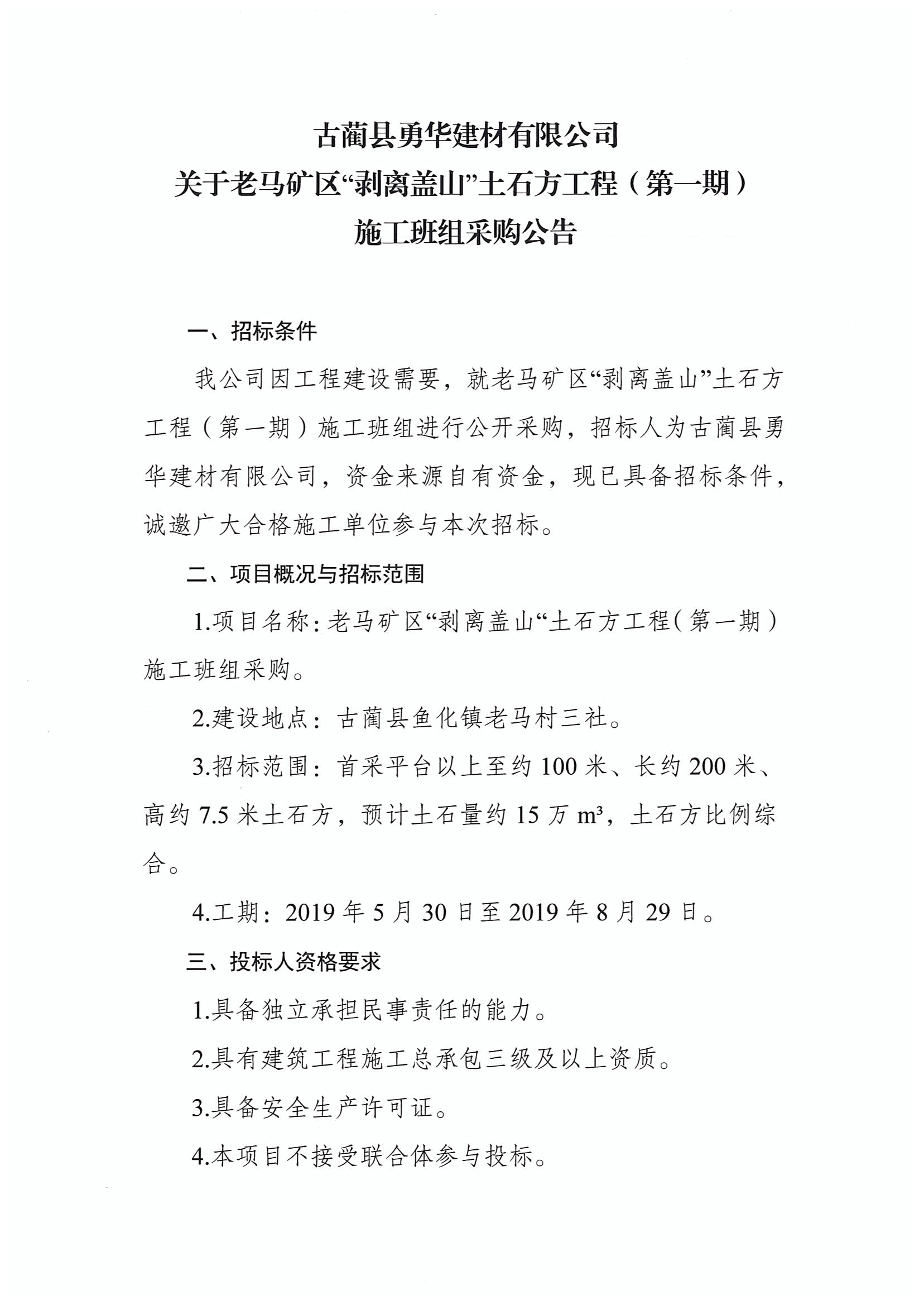 老馬礦區(qū)“剝離蓋山”土石方工程(第一期)施工班組采購公告