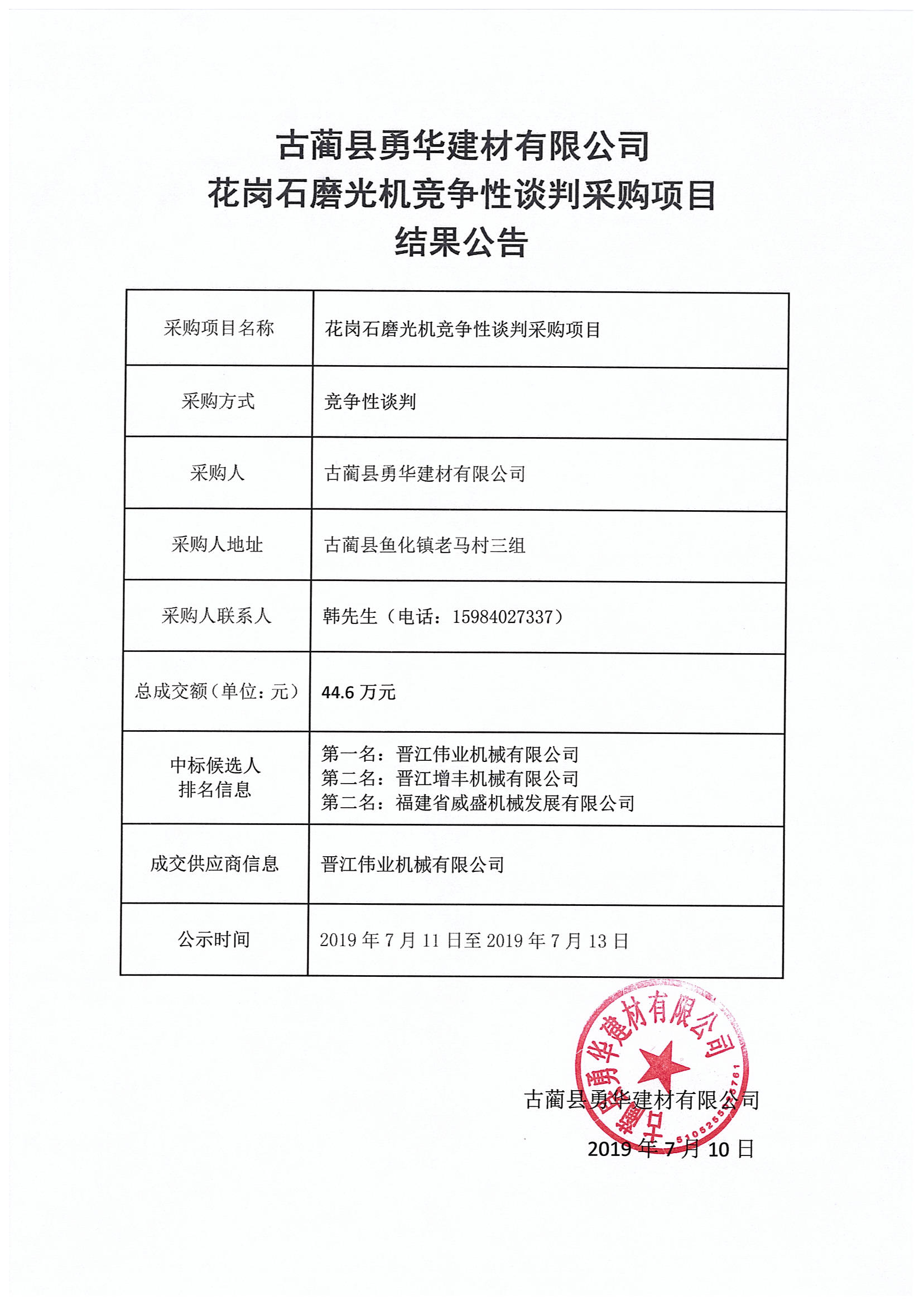 花崗石磨光機(jī)競(jìng)爭(zhēng)性談判采購(gòu)項(xiàng)目結(jié)果公告