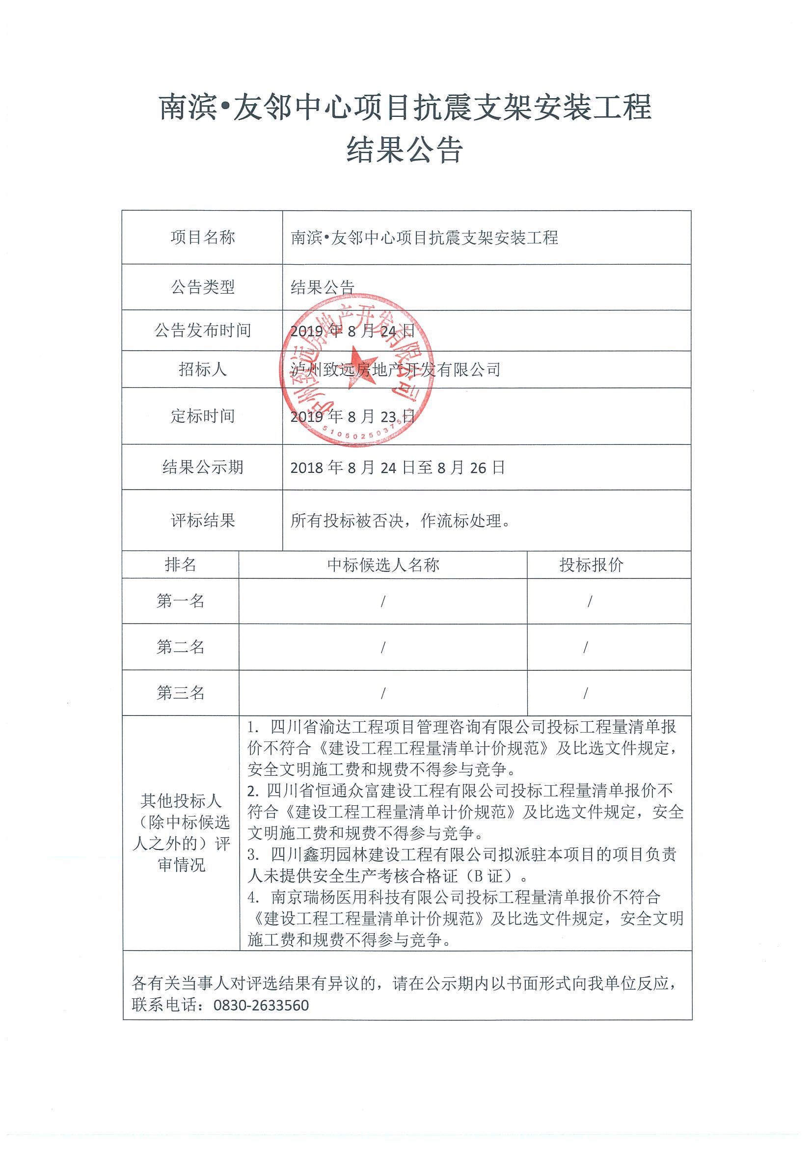 南濱?友鄰中心項(xiàng)目抗震支架安裝工程結(jié)果公告
