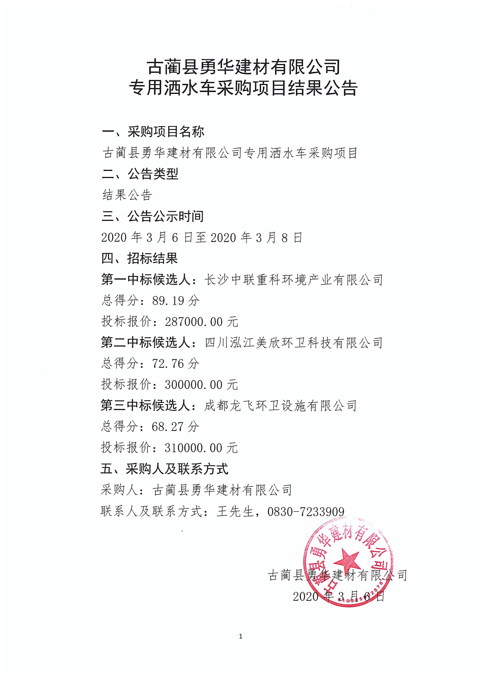 專用灑水車采購項目結(jié)果公告