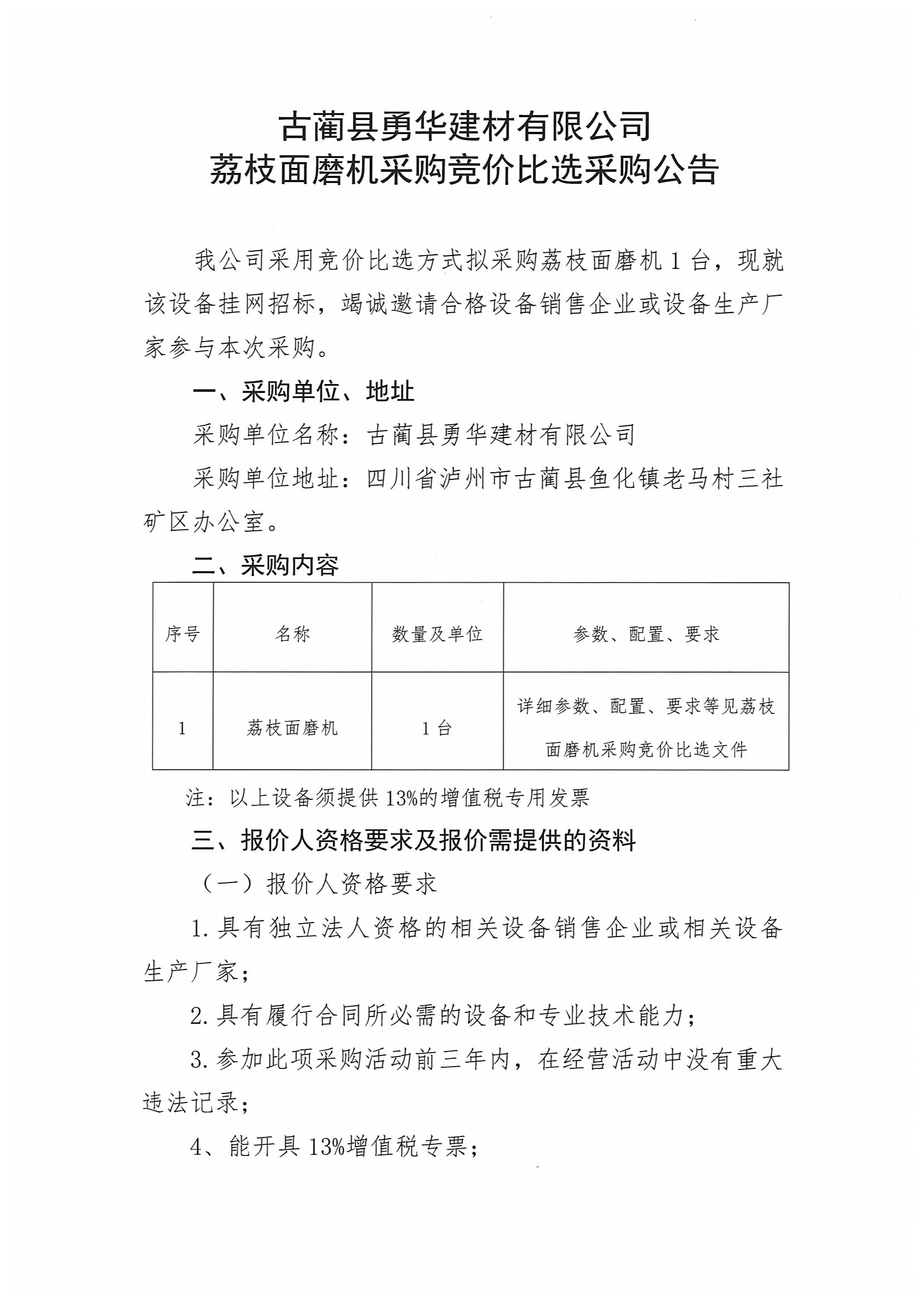 荔枝面磨機(jī)采購(gòu)競(jìng)價(jià)比選采購(gòu)公告