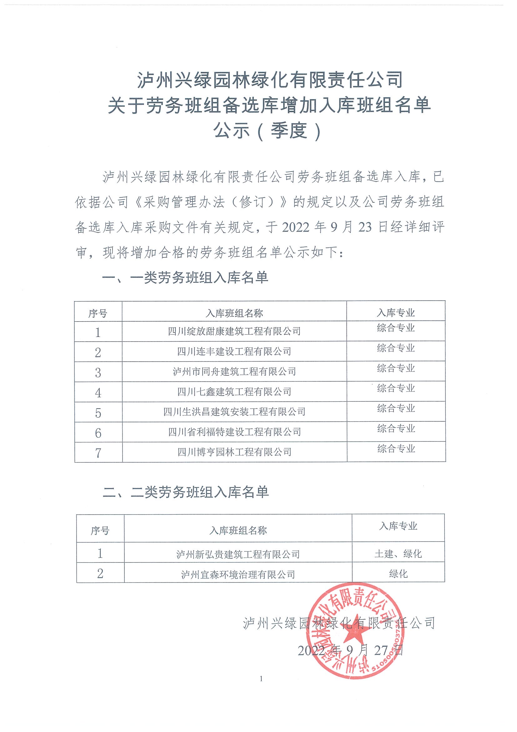 關(guān)于勞務(wù)班組備選庫增加入庫班組名單公示(季度)