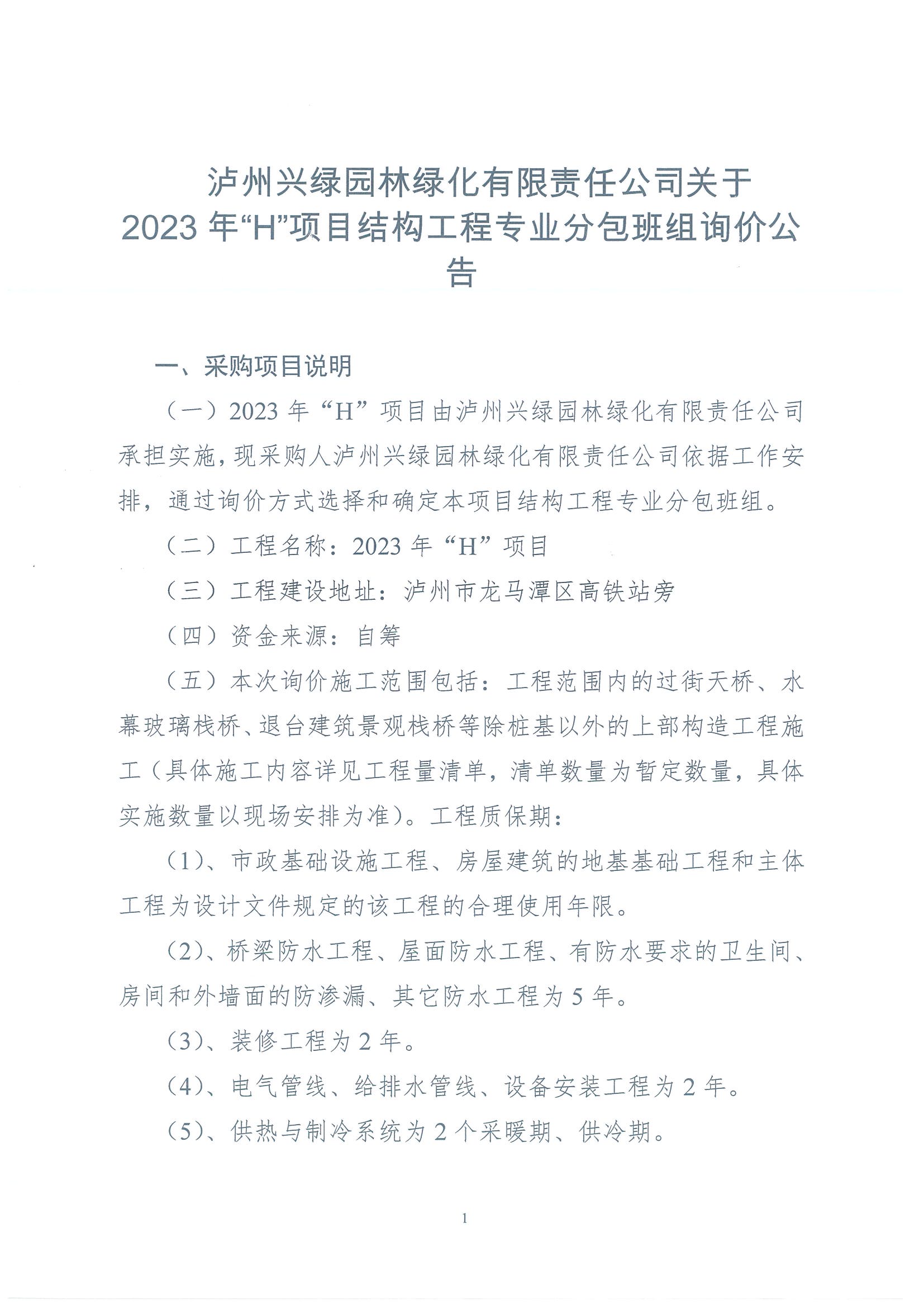 2023年“H”項(xiàng)目結(jié)構(gòu)工程專業(yè)分包班組詢價(jià)公告